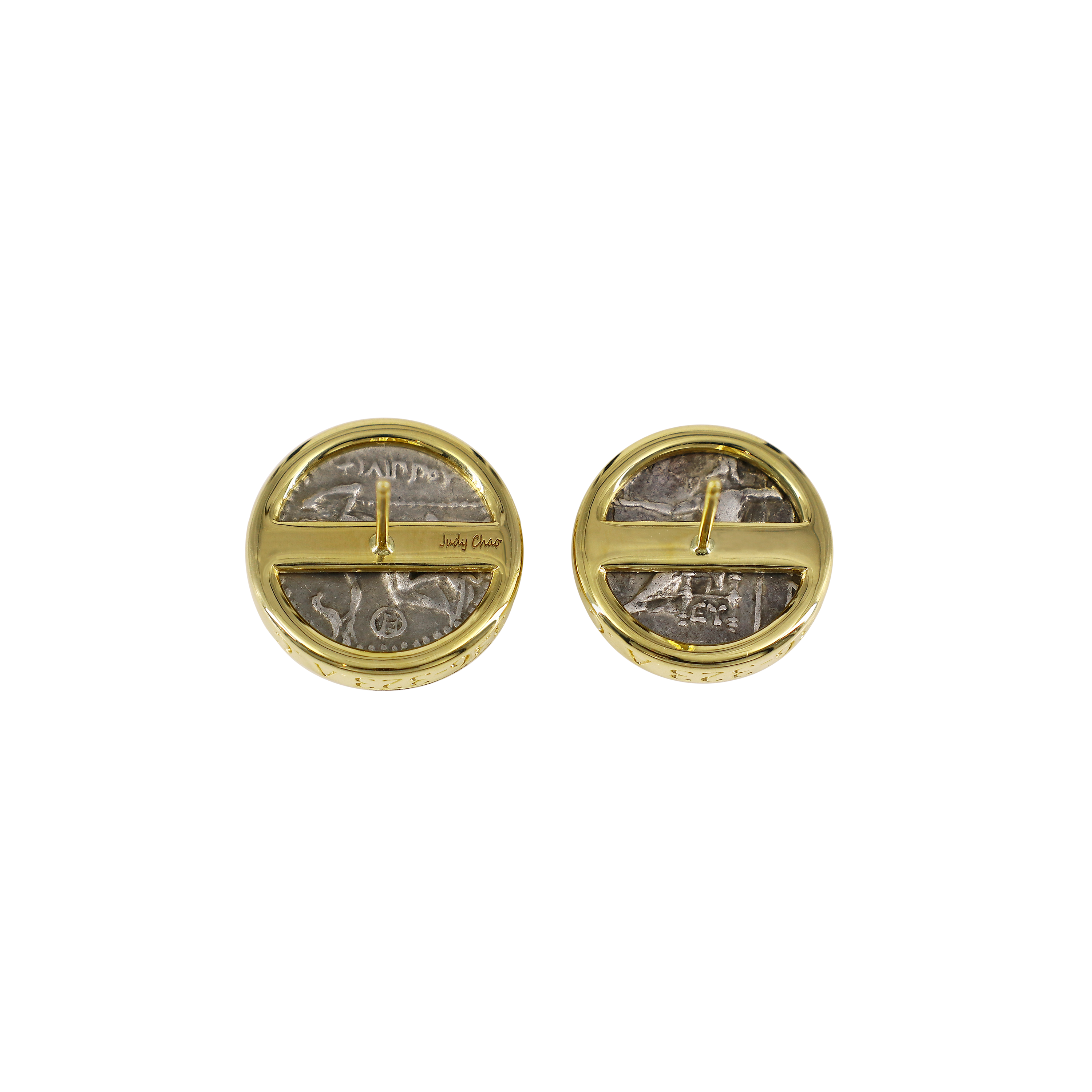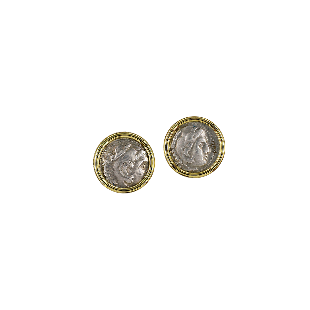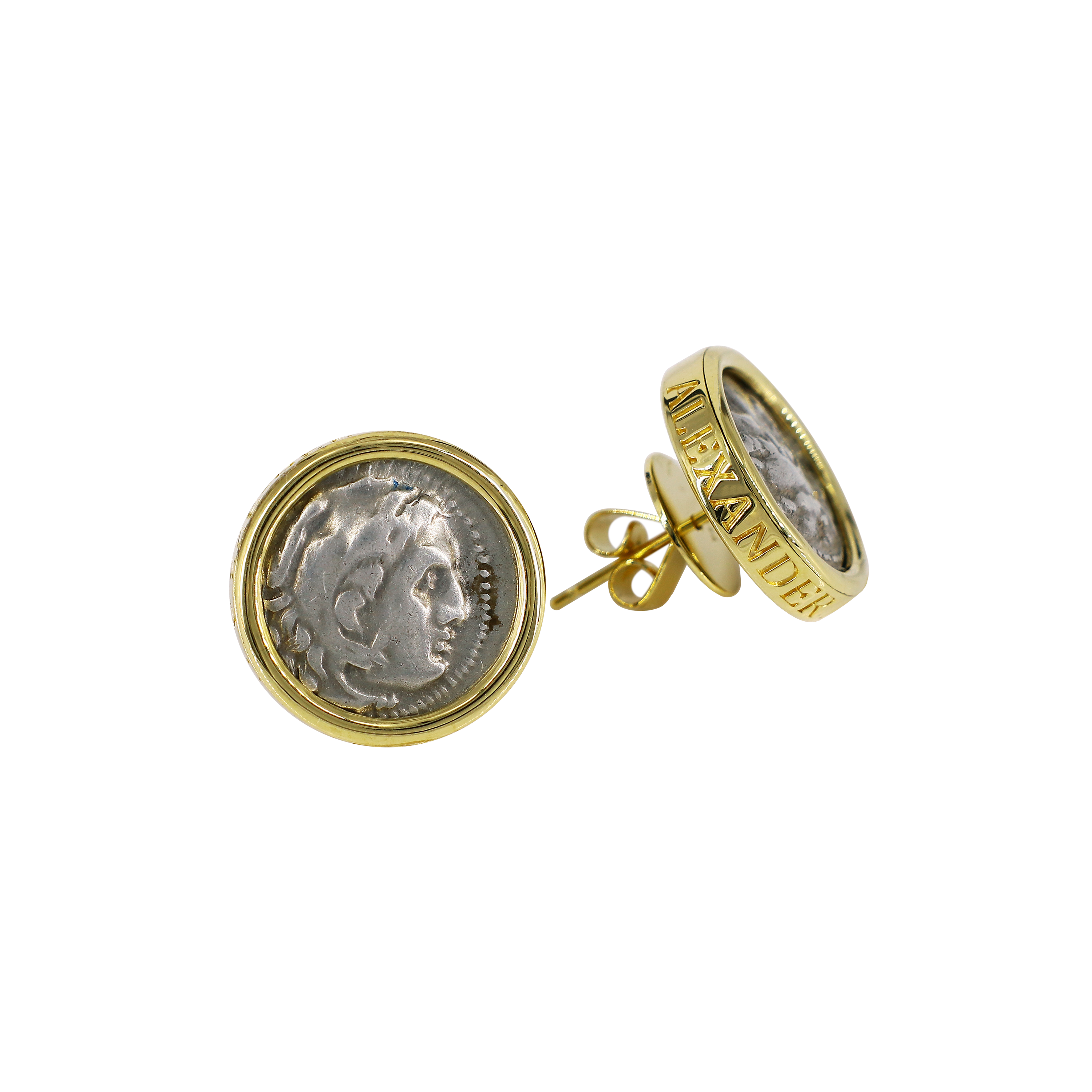 These earrings are set with coins over two thousand years old, bearing the image of Alexander the Great — a timeless symbol of power and legacy, forever etched in metal.